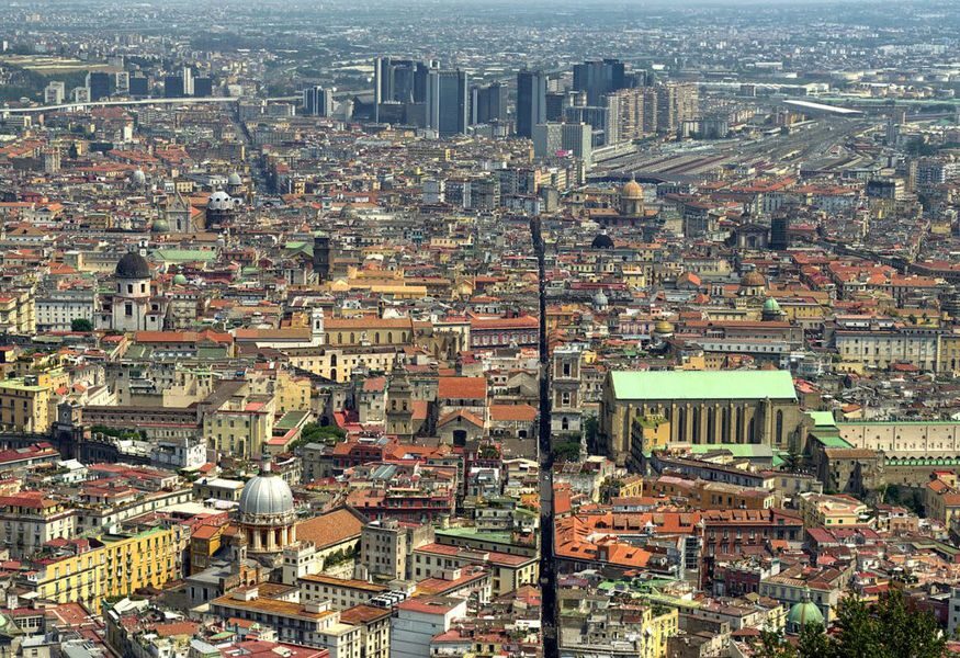Ai piedi della collina si estende il centro storico di Napoli, un intrico di strade, piazze e monumenti che raccontano oltre 2000 anni di storia. Da qui si possono individuare chiaramente: